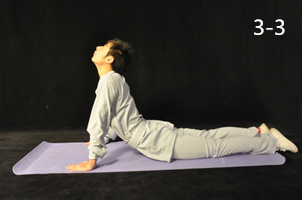 动作3:肘关节逐渐伸直,继而仰头(图3-3)。