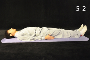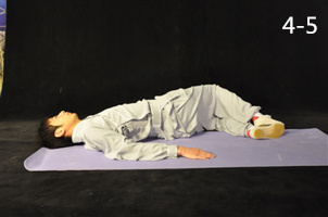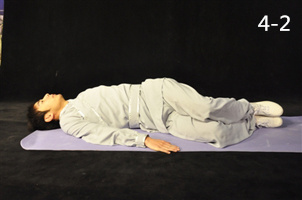 动作4:伸膝呈仰卧位,双手置于体侧,手心向下(图4-4)