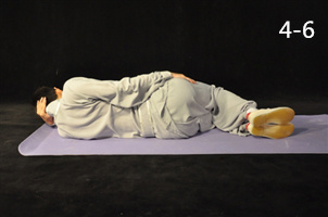 动作7:左肘关节屈曲,左手置于耳下;同时右手带动右肩左转,呈侧卧位(图4-6)