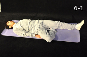动作1:右膝屈曲,右足踝压于左膝关节正下方,左膝关节伸直(图6-1)