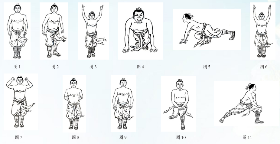 4.导引时机:形疲神乏、心烦意乱时,行疏肝明目导引方2组,有助于疏肝理气、调节情志、滋养双目。