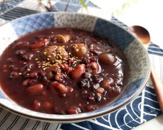 原料:红豆、黄豆、红枣、板栗、核桃仁、莲子、白果、薏仁。