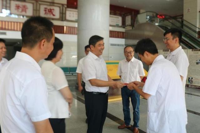 为营造良好的“尊医重卫”社会氛围, 8月19日下午,道县县委书记李天明,县委常委、宣传部长蒋金银一行来到道县中医医院看望慰问刘磊、刘友主两位80后医疗人才代表,并代表县委、县政府向全体医务工作者致以节日问候和祝福。