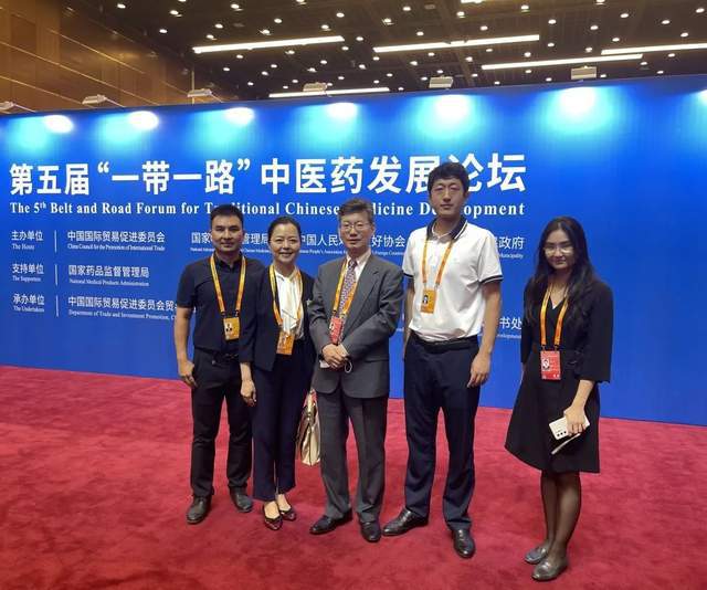 【国家中医药管理局国际合作司司长吴振斗(中)在了解医院展出主题后表示,医院要加快中医药传承创新发展,把中医药传统优势与现代医学紧密联系,提高产品市场传化率,推动更多更好的中医药产品走向海外】
