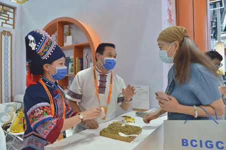 以广西国际壮医医院展台为例,他们带来了壮医特有的药线点灸疗法和药物竹罐疗法。广西国际壮医医院外联部副主任肖世艳告诉《华夏时报》记者,“壮医药线点灸疗法和药物竹罐疗法,分别是国家级和广西壮族自治区级非物质文化遗产项目,它们分别在2013年纳入国家中医药管理局‘7个民族41个病种民族医临床路径’中的骨关节炎、腰椎间盘突出症、痛风、腰背肌筋膜炎治疗方案中,2019年纳入广西医保支付范围。”