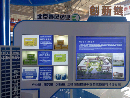 在春风药业展台,记者看到很多北京市民耳熟能详的院内制剂。观展者们提出,希望院内制剂广阔流通,提高配药便捷性。此次北京春风药业展示的产学研科研合作及转化成果给观众留下了深刻印象。春风药业工作人员向《华夏时报》记者介绍,“益肾祛痛颗粒、芪珀生脉颗粒、银丹解毒颗粒等都是院企合作的代表产品,预计院内制剂转化将成为未来中成药探索的新方向。”作为唯一携中药配方颗粒智能化中药房参展企业,记者看到工作人员现场展示自动化中药配方颗粒配置。在针灸铜人展示区,多观众参观、互动、体验,得到了社会各界高度关注。