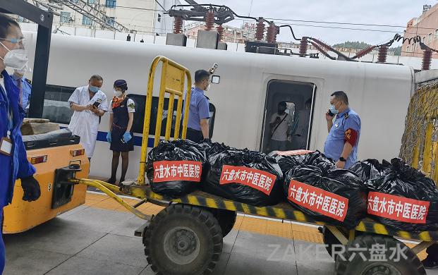 下午 2 点,水城区卫生健康局、市中医医院将熬制打包好的 2001 袋中医药防治汤剂送到六盘水高铁站内并交付给 D2848 次高铁工作人员,请他们帮忙运输至贵阳北站,转交到贵阳市卫生健康局中医处工作人员手中。列车于 15:16 发车,16:48 到达贵阳北站。一袋袋精心熬制的中药汤剂不仅仅是一份防护,它更是承载着水城人民的爱心与温暖。