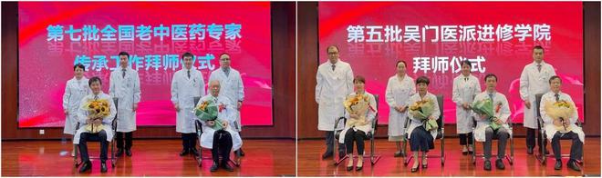 现场,吴门医派进修学院的学员代表及全国老中医药专家师承传人分别向自己的老师恭行拜师礼,献上鲜花。