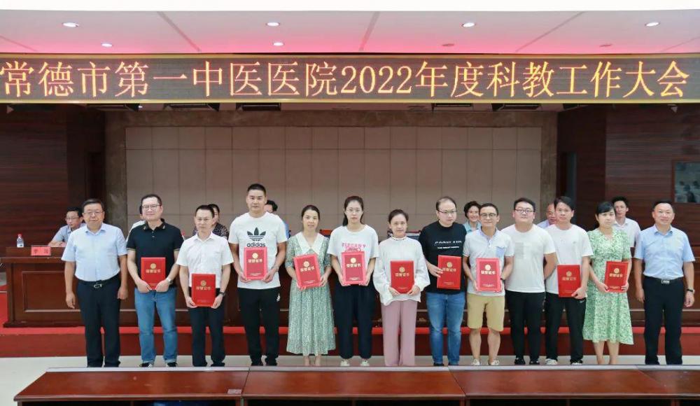 大会还对2021年度科教先进集体和先进个人进行表彰,包含湖南中医药大学第三届课程思政教学竞赛获奖1人、优秀住培带教老师10人、优秀住培秘书5人、优秀教师10人、优秀教研室2个、学术论文奖6人,科研项目专项按时结题奖3人、国家级课题申报鼓励奖1人、科研项目立项奖11人,国家专利奖7人、十大新技术奖12人。泌尿外科主治医师王坤代表获奖人员作表态发言。