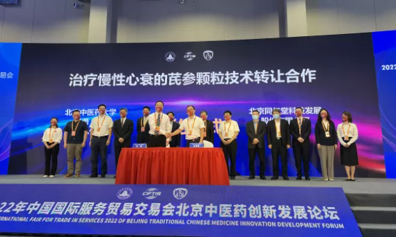 近日,在2022中国国际服务贸易交易会-北京中医药创新发展论坛上,同仁堂集团与北京中医药大学共同签约“治疗慢性心衰的芪参颗粒”转化合作项目,标志着具有353年悠久历史的同仁堂在助力中医药行业创新推进产学研合作模式上再创新篇。