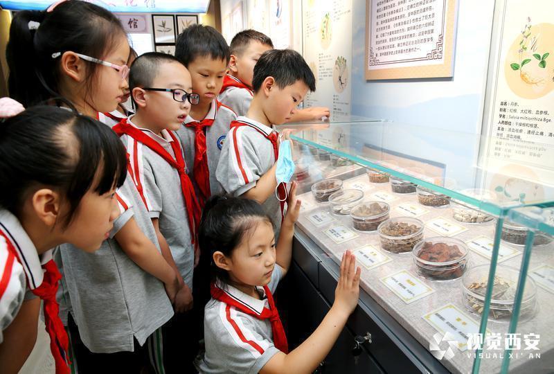 西安新闻网讯 9月2日,碑林区五味什字小学学生在校园秦岭文化馆之中医药馆观看中草药标本。据悉,五味什字小学前身为安徽同乡会会馆,1944年10月由陆福建、黄芦初等人在五味什字筹建,始为私立性质的初级小学,名为安徽小学,后更名为江淮小学。1952年10月,学校由西安市人民政府接管,改为公立完全小学并正式更名为五味什字小学。