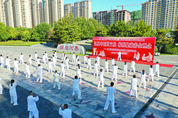 活动中,广大医护人员和中医药文化爱好者表演了八段锦传统养生功法、太极拳等文化节目。大家跟随音乐平和吐纳、气守丹田、双臂上托、攒拳抓握、稳扎马步……将八段锦、太极拳圆活连贯、虚实相生、刚柔相济等特点演绎得淋漓尽致,以生动的形式、丰富的内涵,向群众诠释了中医药文化的博大精深,充分展现了香河县中医药文化爱好者守正创新、团结拼搏、弘扬国粹的精神风貌和文化素养,充分展示了中医药文化魅力。