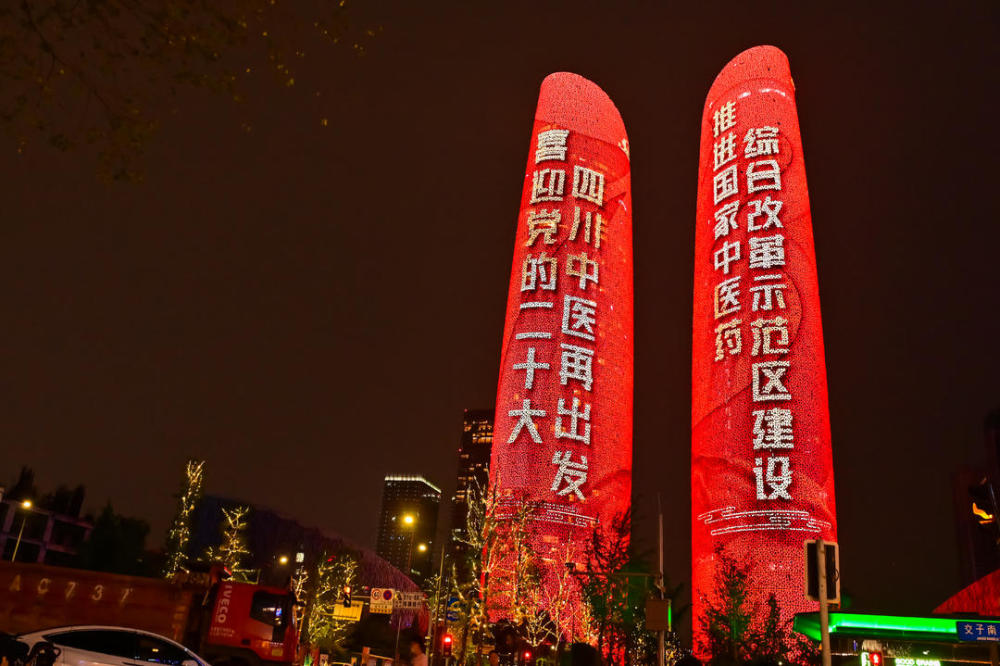 喜迎党的二十大,四川中医再出发。在党的二十大即将召开之际,10月4日晚,一场特别的中医药主题灯光秀在成都金融城天府双子塔上演。