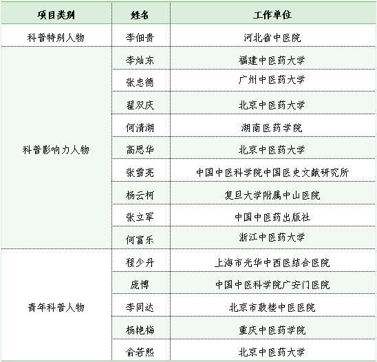 近日,中华中医药学会发出《关于推荐2022中医药科普人物和科普作品的通知》,按照《中医药年度科普人物和年度科普作品遴选管理办法(试行)》的程序和要求,经推荐、形式审查、专家遴选、公示等流程,共产生15名中医药年度科普人物和15部中医药年度科普作品。具体名单如下: