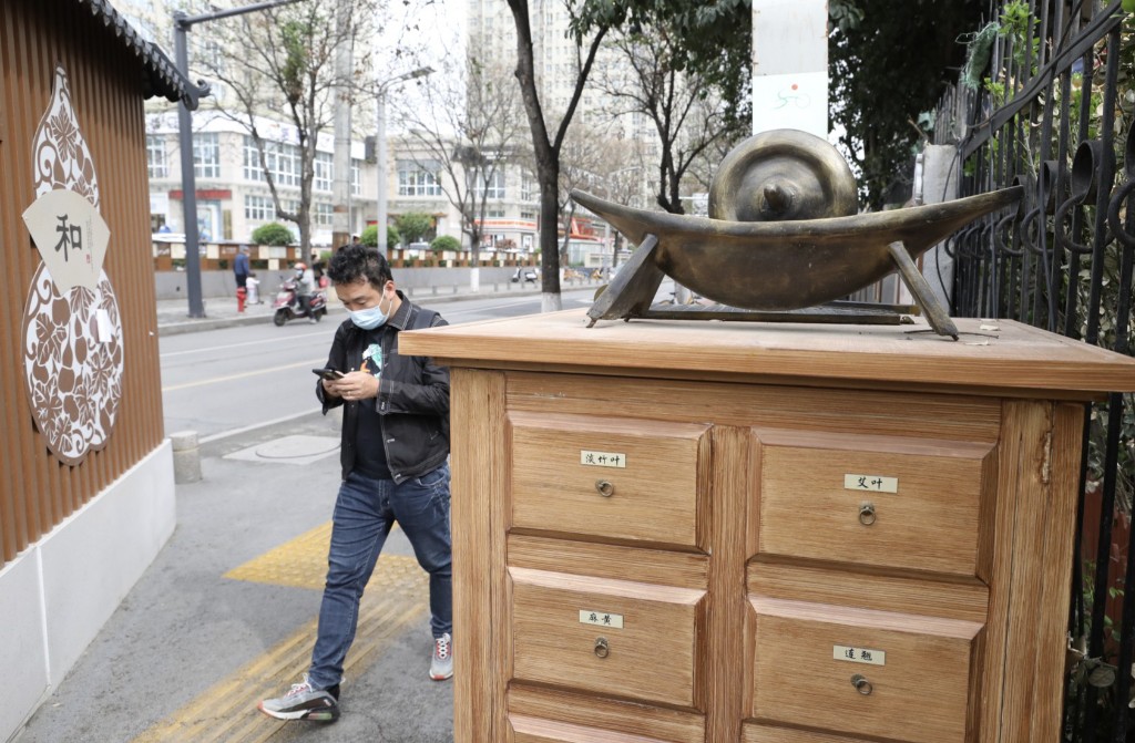在西安市电子西街的人行道两侧,中药材和展板上的中医药知识成了不少市民休闲“打卡地”。这条中医药文化主题街,通过橱窗摆放着中药材和展板,介绍了常见中药材的功效以及养生保健和中医药知识。