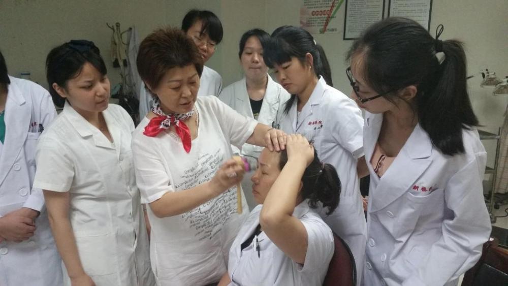 张丽在进行赵氏雷火灸教学