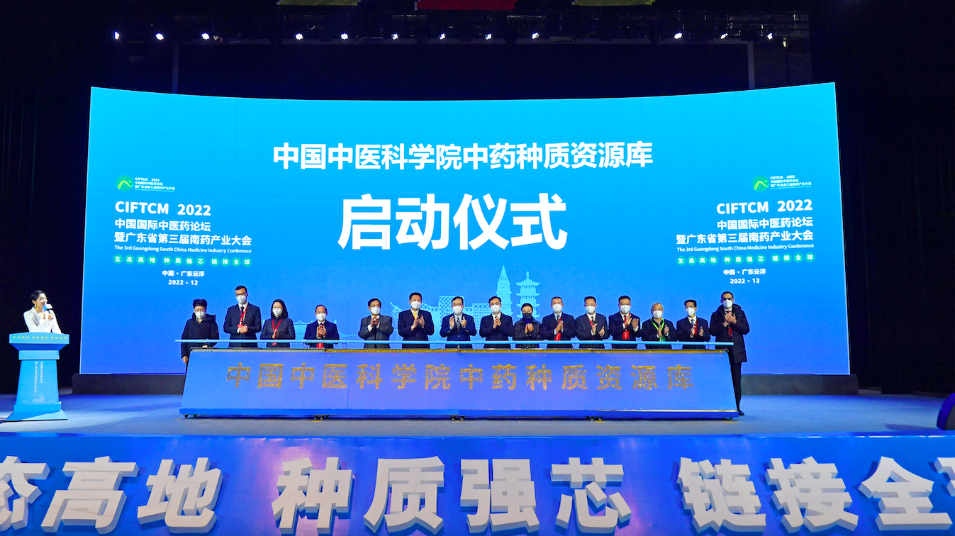 论坛现场,举行中国中医科学院中药种质资源库启动仪式。论坛主办方供图