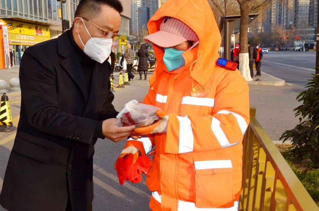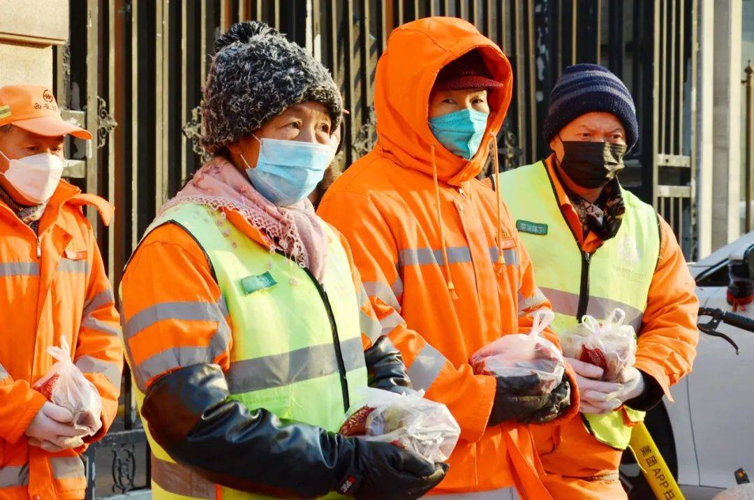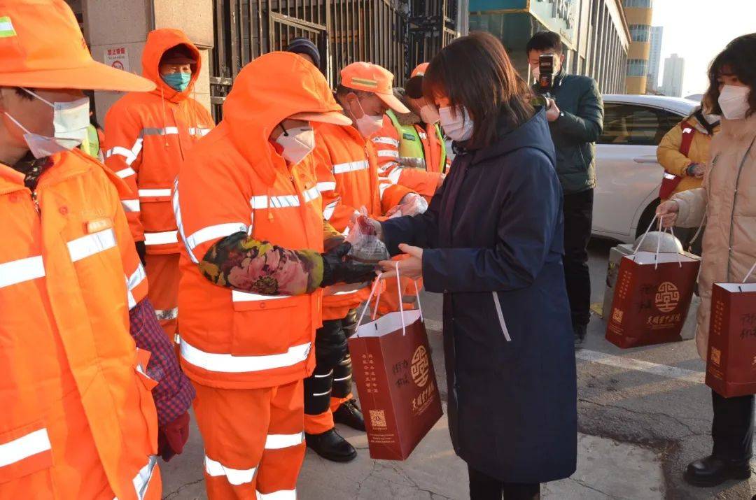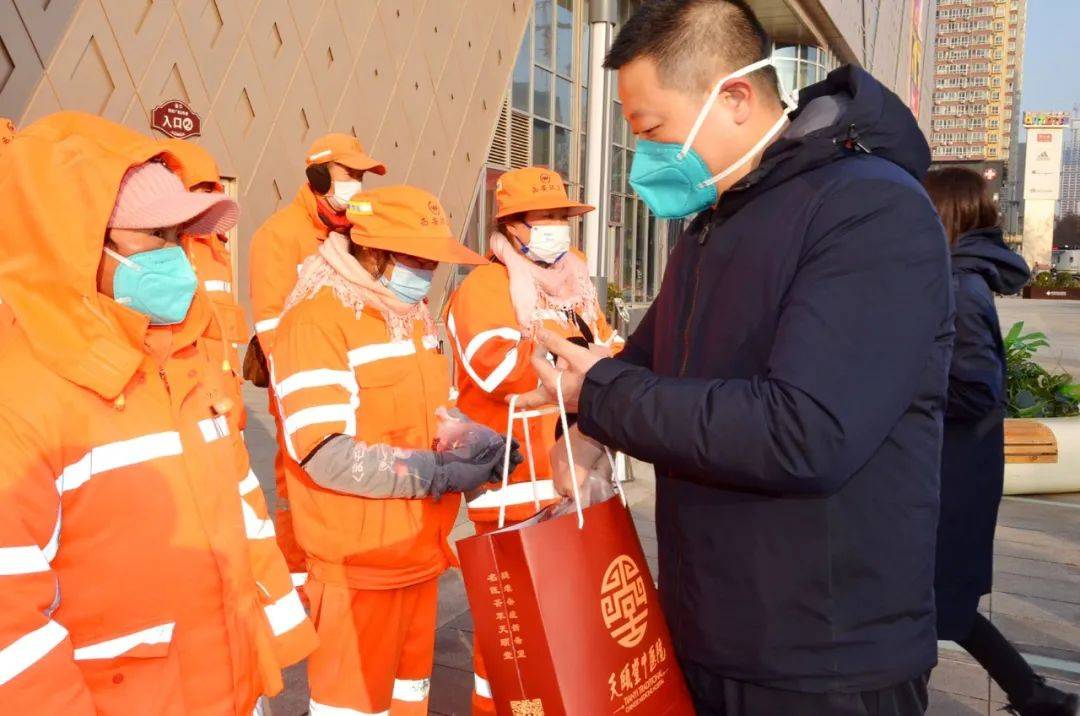 王燕茹副局长、曹振军院长以及谢骋副书记、亓战辉副主任现场为环卫工人发放“清瘟护肺汤”!
