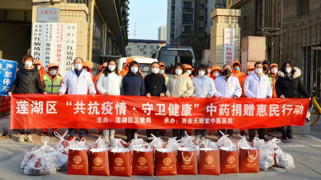 古今中医网讯:2022年12月28日,由莲湖区卫健局主办,西安天颐堂中医医院承办的“2022莲湖区‘共抗疫情·守卫健康’中药抗疫公益捐赠行动”暖心开启,莲湖区卫健局副局长王燕茹、西安天颐堂中医医院院长曹振军调配中医药资源,组织公益医疗援助队,向红庙坡街道办、北关街道办、莲湖区养老服务中心等机构的环卫工人、高龄老人及工作人员1200余人,免费捐赠总价值136800元的“清瘟护肺汤”3600余付,7200多袋,用最朴实的行动,践行“大医精诚、济世为民”的中医精神!