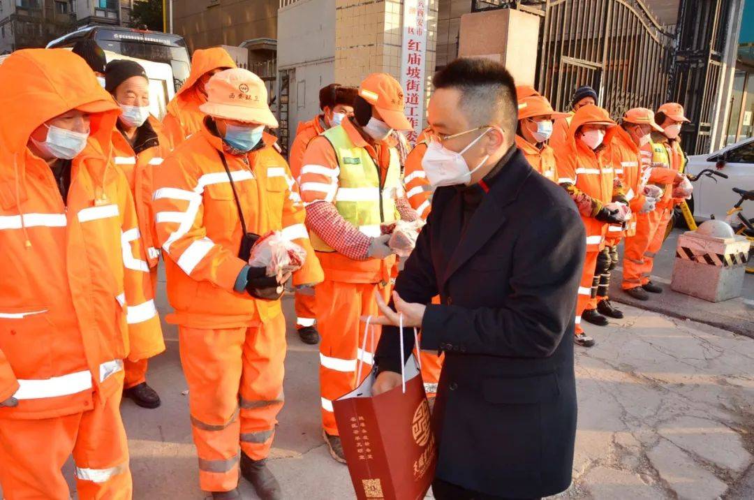 王燕茹副局长、曹振军院长以及红庙坡街办党政办张昀主任现场为环卫工人发放“清瘟护肺汤”!