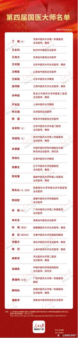 7月20日下午,经国务院批准,国家人力资源社会保障部、国家卫生健康委、国家中医药管理局召开第四届国医大师和第二届全国名中医表彰大会,大会以电视电话形式召开,在北京设主会场,在各省设分会场,会上授予30人国医大师称号、101人全国名中医称号。