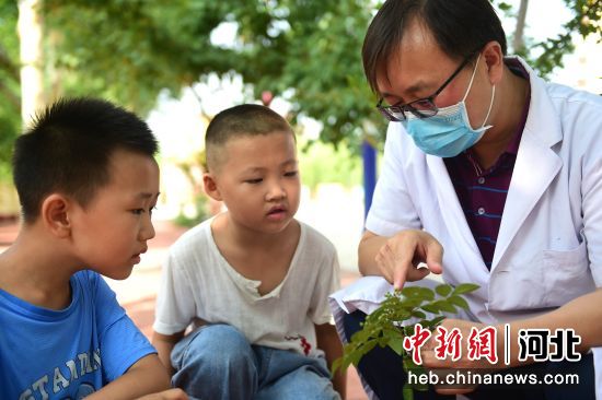 图为沧州市中西医结合医院的医药师在沧州市新华区三角线社区为孩子们讲解花椒的药用价值。 张子衡 摄