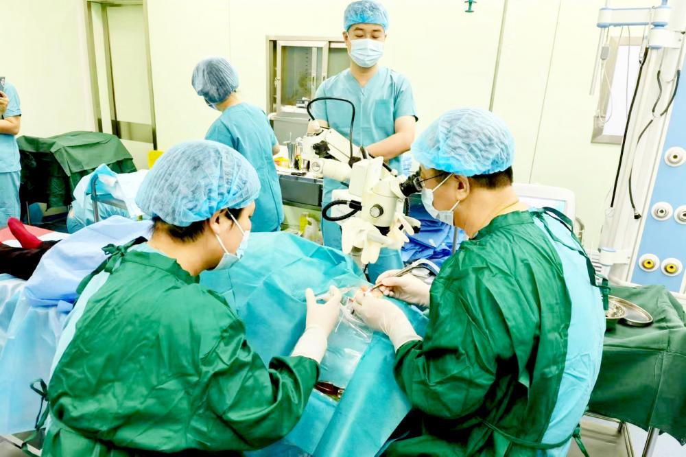 图为眼科医院专家为当地患者做手术。 五寨县中医院供图