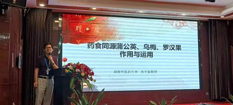 湖南中医药大学中西医结合学院肖子曾教授、湖南省药食同源功能性食品工程技术研究中李亮副教授分别以《道地药材的产地与疗效》《药食同源目录中 蒲公英、乌梅、罗汉果、无花果、栀子花等临床疗效》《药食同源产品研发与市场转化经验分享》为主题做了专题演讲,受到与会者热烈欢迎。