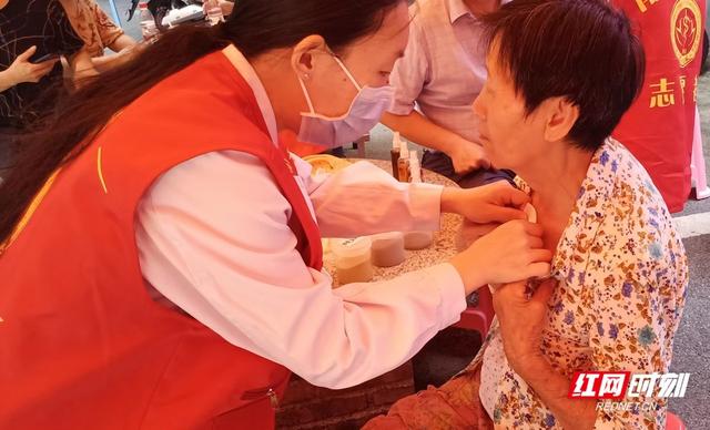 当天,南华附一医院第四党总支第31党支部书记兼中医科主任黄艳等专家坐诊,为市民提供义诊、贴三伏贴、耳穴压豆、针灸治疗、推拿治疗、中药涂擦治疗、中医药健康咨询及中医药保健指导等服务。志愿者们还为慢性病患者需要复诊的社区居民送上了“中医科党建义诊免费就诊卡”,嘱咐他们及时到医院来复诊。