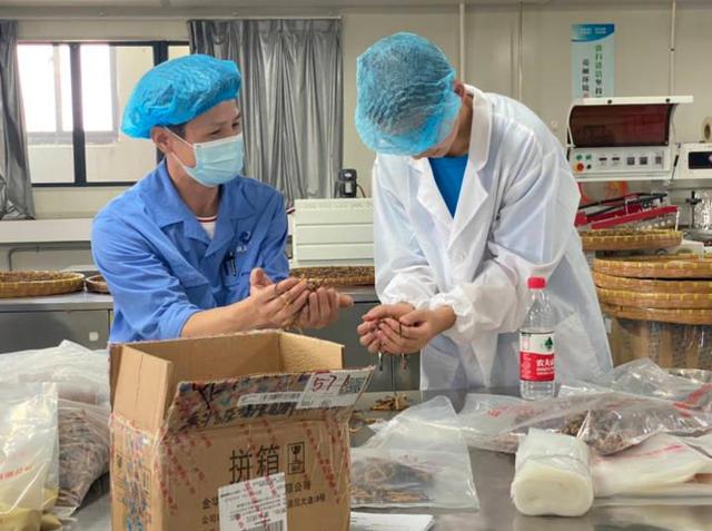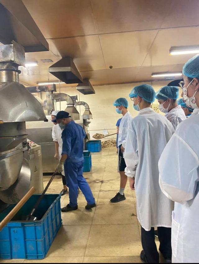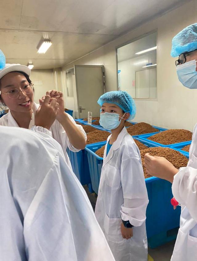 浙江钱王中药有限公司总经理宓文佳带领科考队进入工厂。“你们看这片药材表面有一层白白的,猜猜看是什么东西?”宓文佳总经理时不时会拿起一些草药材提问科考小队。经过前几日的考察和知识学习,大家都能认出这是中药起霜的现象。