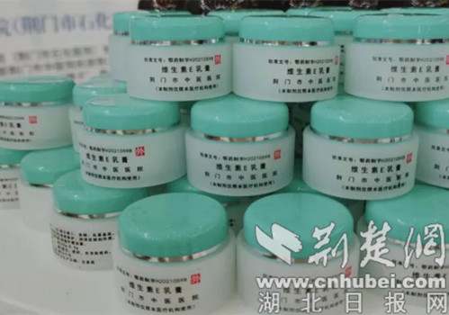 在荆门馆中,荆门市中医医院的维生素E乳膏、中药香囊等特色产品在医疗药品展区展出。据了解,维生素E乳膏是荆门市中医医院的明星制剂,已在临床应用多年,具有滋润保湿、改善皮肤干燥的作用。该制剂适用人群广,效果显著,深受市民朋友们的喜爱。