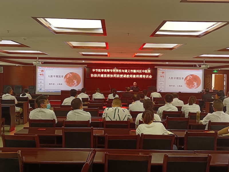 为加强校院合作交流,深化医教协同发展,持续推广“1+1+1”中医学专业现代学徒制教学模式,7月30—8月3日,毕节医学高等专科学校中医系主任赵永带队前往金沙县中医医院、遵义市播州区中医医院为医院的医生与相关管理人员在教学管理能力、学生管理能力、课堂教学能力等开展培训。学校中医系、大健康产业研究中心相关教师、两家医院相关负责人及所有任课教师参与培训交流。
